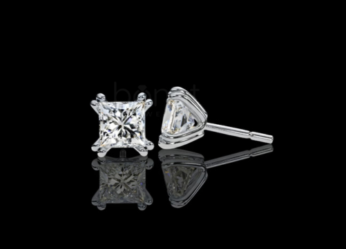 Timeless Spark Princess Cut Moissanite Diamond Solitaire Stud Earrings | D VVS Experience breathtaking sparkle with these Princess Cut Moissanite Diamond Solitaire Stud Earrings. Known for their intense fire and brilliance, each D-color moissanite stone is precision cut and set in a classic four-prong basket to enhance light reflection from...