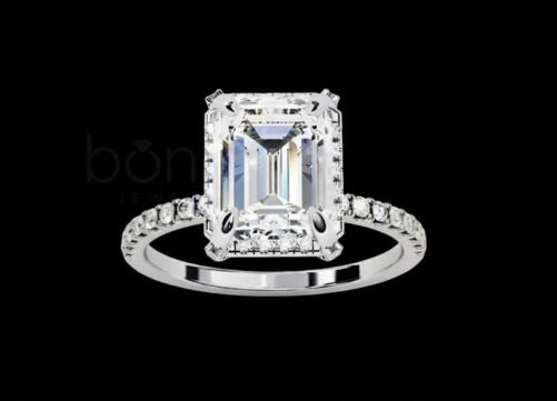 Emerald Cut Solitaire Ring with Pavé Band in D-Color Moissanite | VVS Clarity | Ideal–Excellent Cut