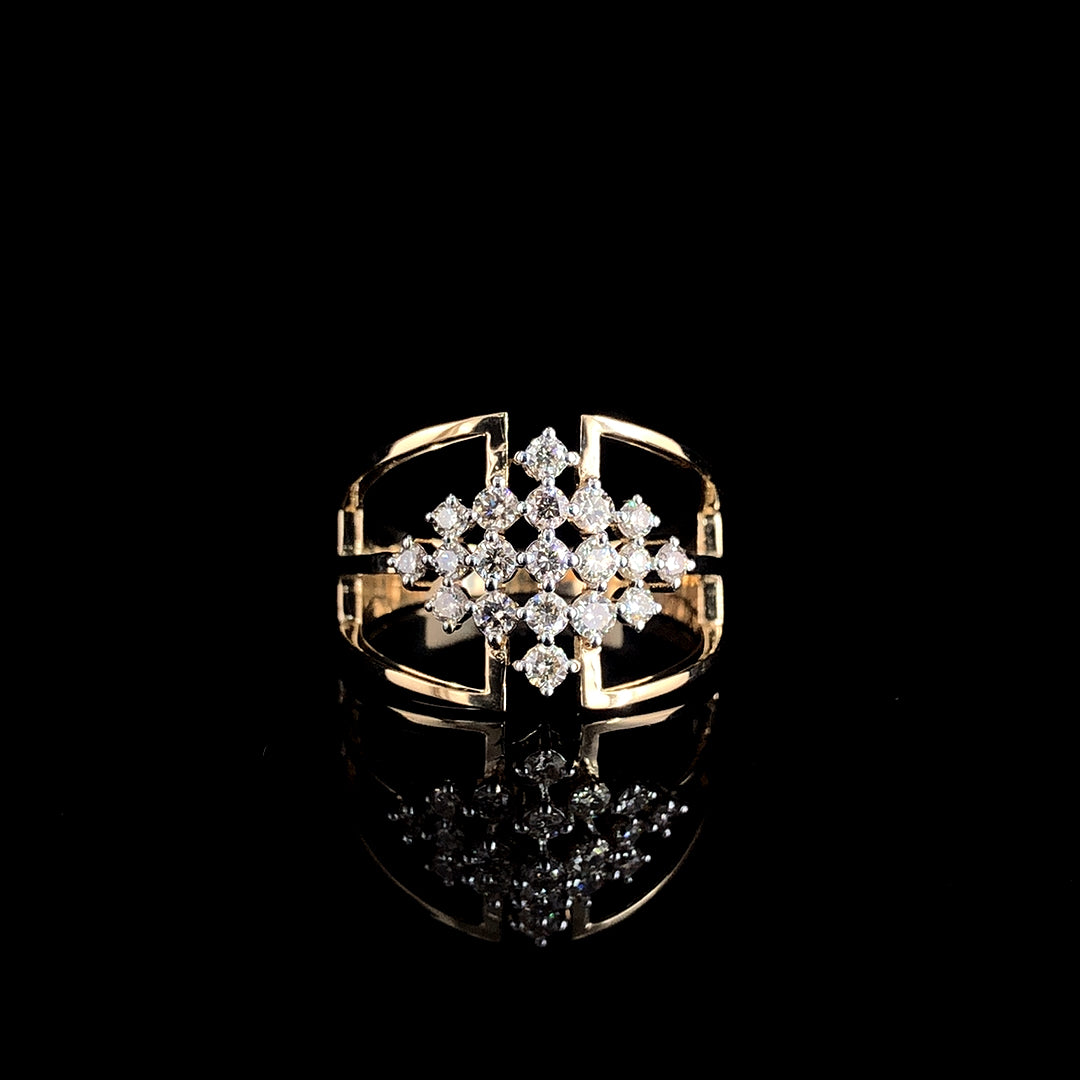 Bold geometry meets timeless brilliance in this exquisite Moissanite Diamond Ring. Designed to stand apart, this piece features a striking cluster of D Color Moissanite diamonds, carefully arranged to create a radiant, architectural pattern that captures light from every angle. The open, structured band adds a modern edge while maintaining a refined, luxurious feel.