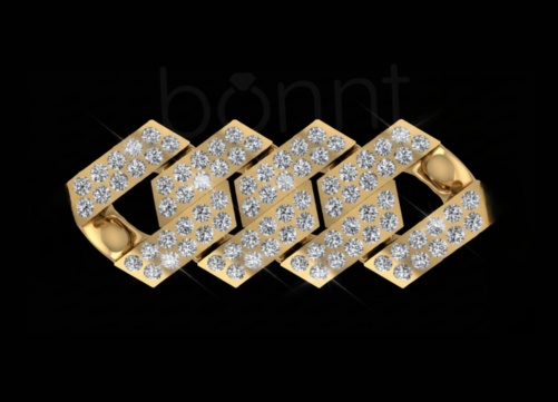 Ultimate "Iced-Out" Brilliance Prepare for maximum sparkle. Each distinctive link is meticulously pave-set with hundreds of brilliant, round simulated diamonds. The stones are set closely together, creating a continuous, shimmering surface of light that catches the eye from every angle. The rich gold-tone finish provides the perfect backdrop for this dazzling display.