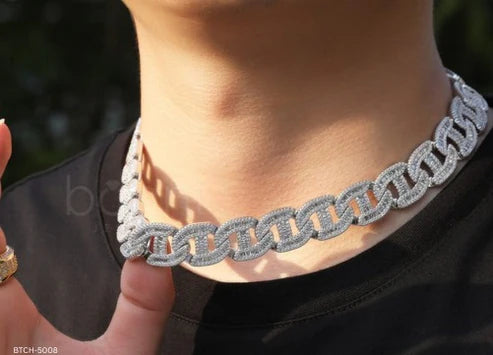 The classic Cuban silhouette is elevated with ideal/excellent cut moissanite, delivering a clean, icy shine from every angle. Designed to sit comfortably on the neck, this chain balances bold hip hop energy with refined luxury—perfect for everyday wear or unforgettable nights.