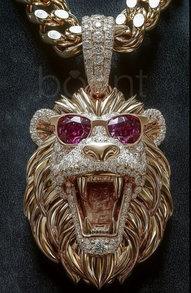 The Iced Lion Head Hip-Hop Pendant brings powerful energy and standout style. Featuring a roaring lion face, detailed mane, and vibrant ruby-tone eyes, this pendant is designed to make a strong statement.