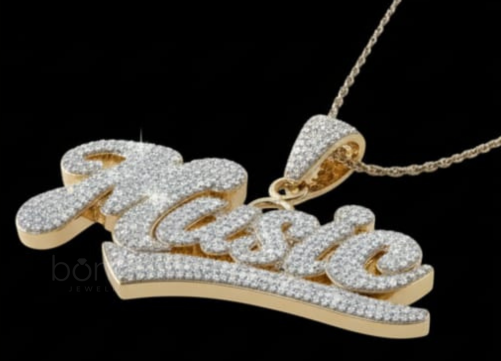 Luxury "Music" Pendant in Lab Grown Diamonds | MUSIC Letter Pendant