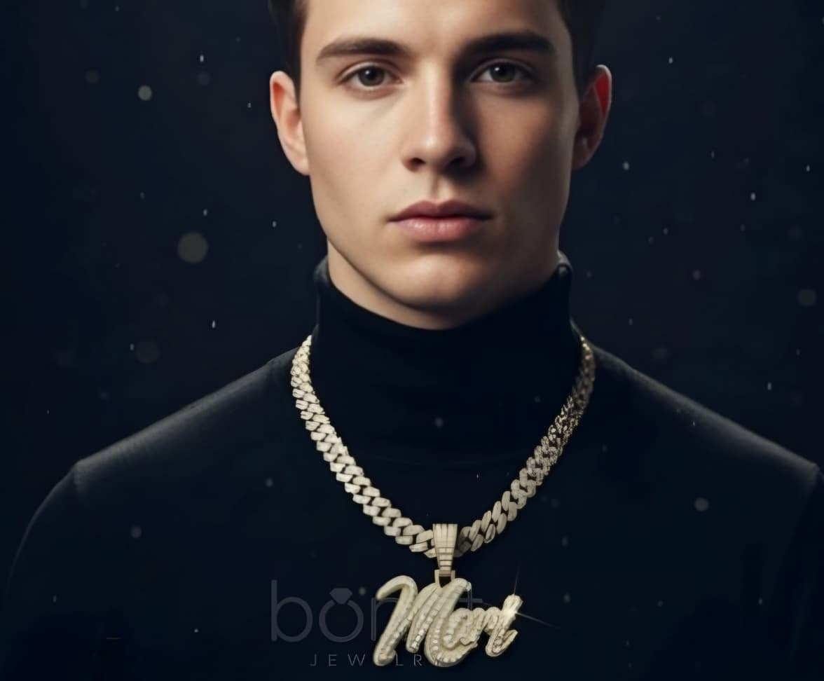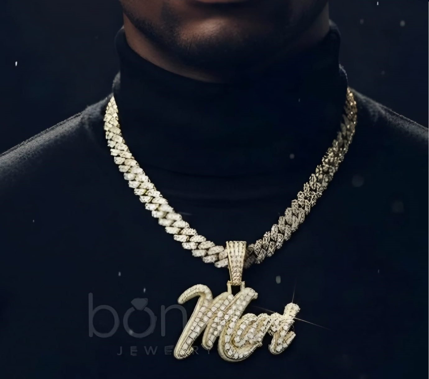 This iced name pendant is crafted with premium VVS moissanite diamonds, known for their intense fire and mirror-like brilliance. With a D color grade and Ideal to Excellent cut, every stone delivers eye-catching sparkle that lasts.
