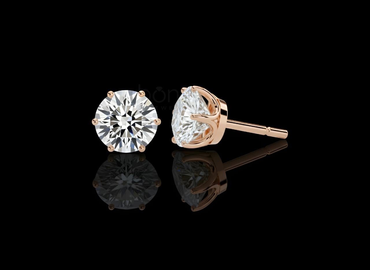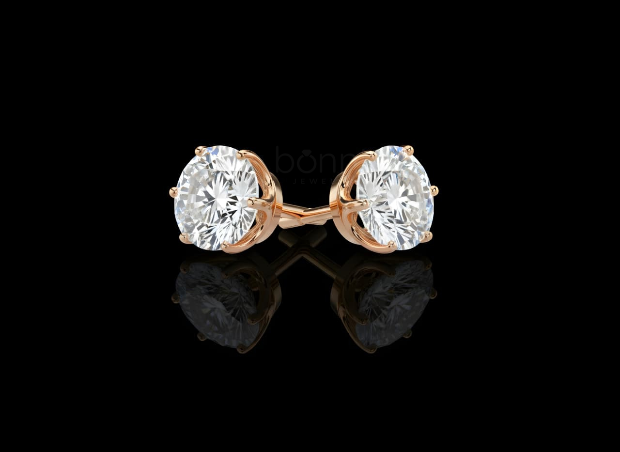 Minimalist Luxury Round Brilliant Solitaire Diamond Stud Earrings – Lab Grown EF VVS/VS
