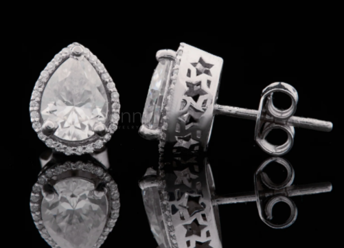 Pear Halo Moissanite Stud Earrings