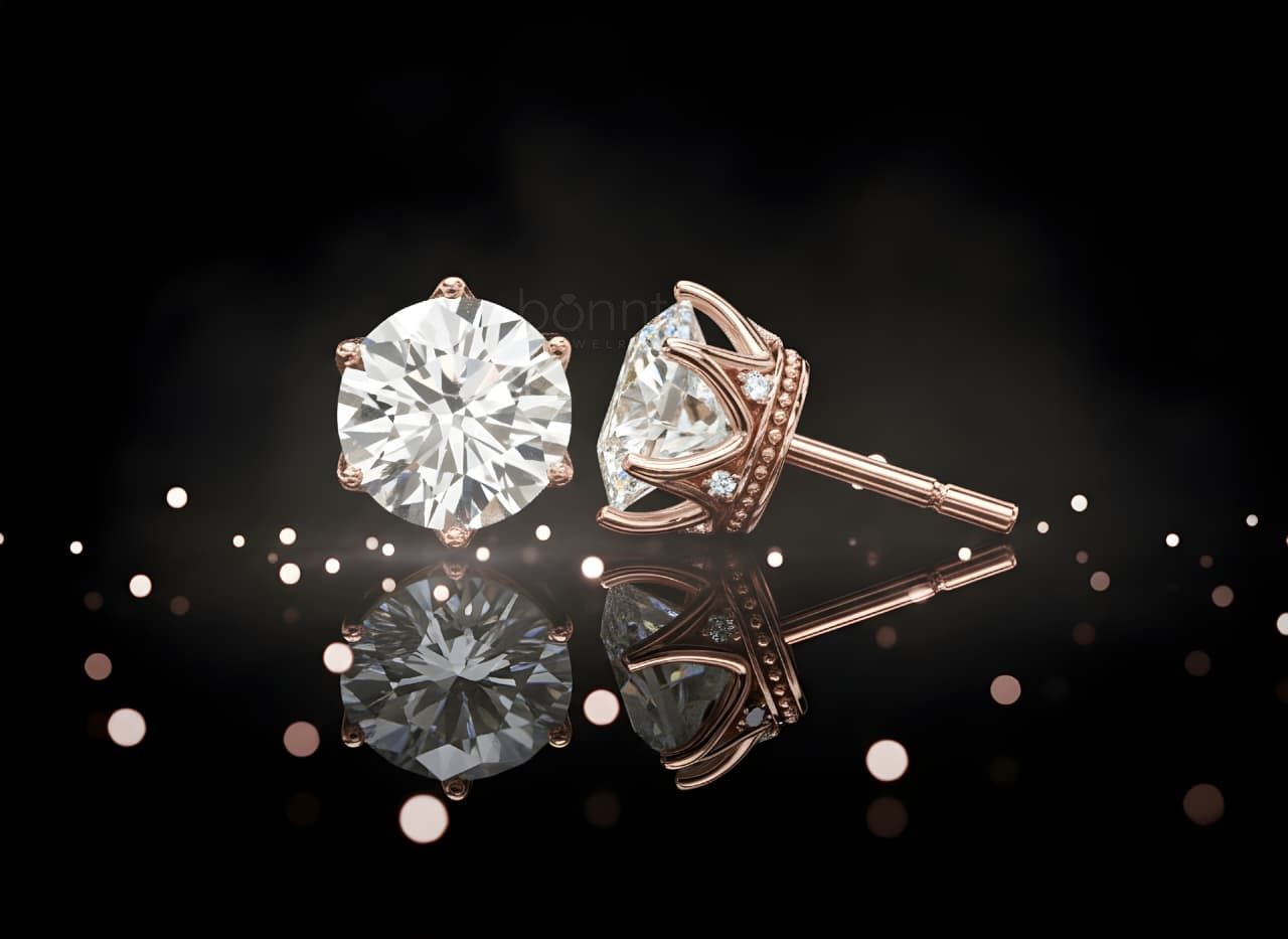 The Brilliant Classic: Six-Prong Solitaire Round Moissanite Diamond Stud Earrings