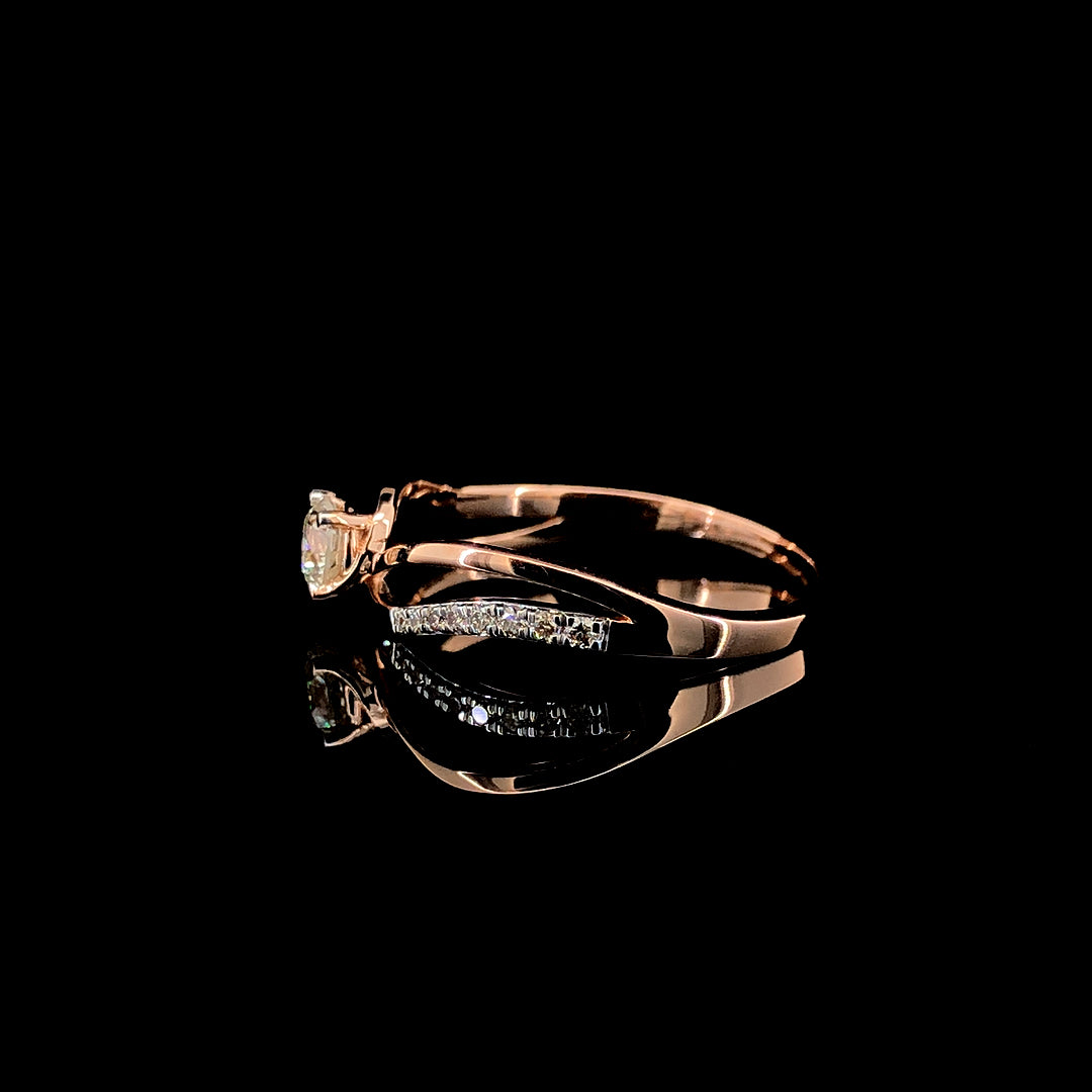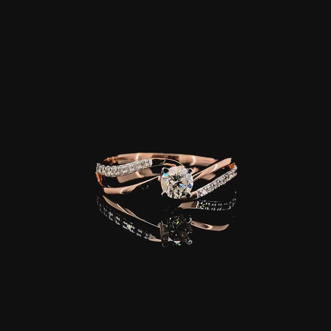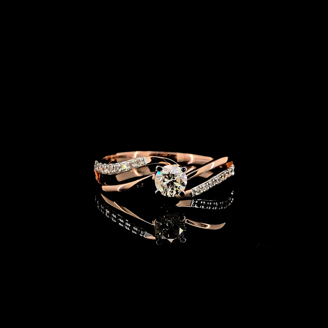 The softly twisted band represents two paths becoming one, gracefully embracing the solitaire diamond. Subtle diamond accents along the band add depth and elegance without overpowering the center stone, creating a balanced look that feels luxurious yet effortless.