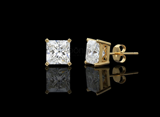 Princess Cut Solitaire Moissanite Stud Earrings – D Color VVS Fire | Bonnt Brilliant sparkle with a modern edge. These Princess Cut Solitaire Moissanite Stud Earrings showcase a premium moissanite stone with D color, VVS clarity, and an Ideal to Excellent cut, delivering exceptional fire and diamond-like brilliance. The crisp...