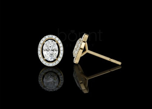The “Aura” Oval Lab-Grown Diamond Halo Stud Earrings The “Aura” Oval Diamond Halo Stud Earrings are designed to glow with timeless elegance. Each earring features a luminous oval-cut lab-grown diamond at the center, surrounded by a delicate halo of micro diamonds that enhances brilliance and creates a soft, romantic aura....